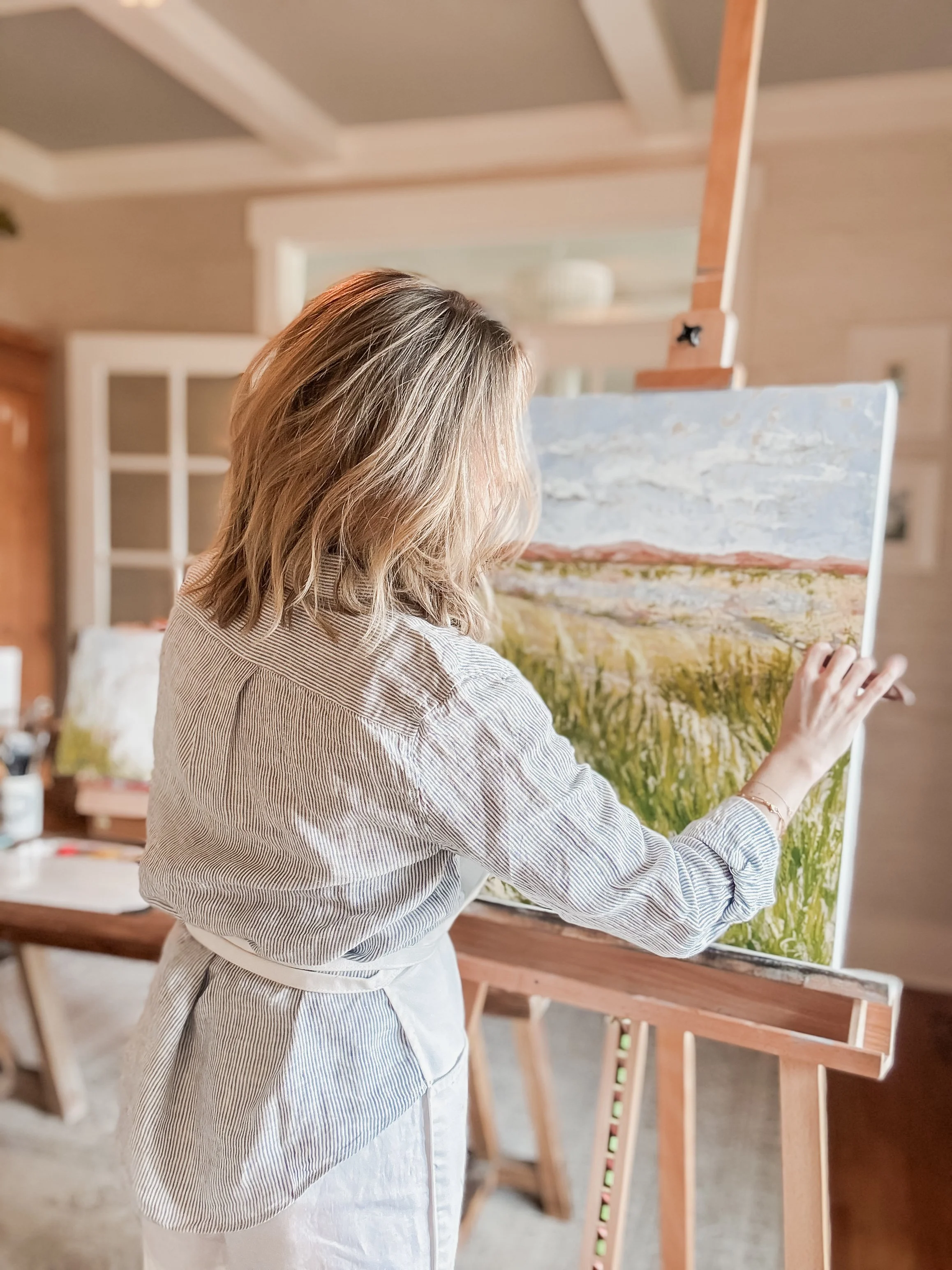 Chelsea is an abstract landscape painter based in Greenville, South Carolina. Her paintings are inspired by the subtle movement within the natural world—the way wind moves across a field, how light shifts through the trees, or how a landscape seems to breathe and change over time.